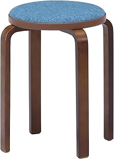 不二貿易 スタッキング スツール 1人掛け 直径32cm ブルー/ブラウン 曲げ木 丸 ファブリック 14547