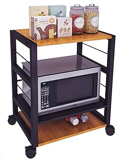 FRSTONE キッチンワゴン 幅53×奥行40cm 3段 レンジ台 キャスター付き プリンター台 サイドテーブル 移動便利 キッチン リビング 寝室 書斎 収納棚 木製 スチール 北欧 おしゃれ