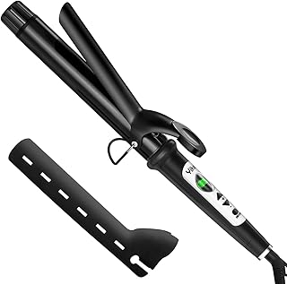 【耐熱シリコンケース付き】 カールヘアアイロン 32mm 25mm PTC加熱 短時間立ち上げ プロ仕様80~220℃ 温度調整 七色LCDスクリーン カールアイロン 巻きコテ くせ毛 前髪 1時間自動電源OFF 360度回転コード 携帯便利 海外対応 家族/旅行/出張用 男女兼用 母の日プレゼント YIHAI (32mm)