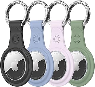 【4個入り】AirTag ケース 2021 タグキーチェーン TPUケース 4個入り 柔軟なタグホルダー 持ち運びに便利 保護カバー 信号は強いまま (ブラック×ブルー×パープル×グリーン)