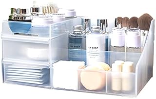 化粧品収納ボックス (クリア) アクリル製 コスメ 大容量 卓上収納 小物入れ 大容量 種類別収納 引き出し付き 横幅:35㎝ 奥行:21㎝ 高さ:16cm