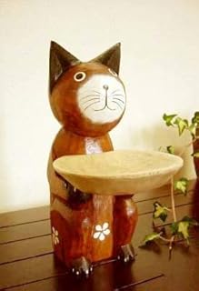 アジアン雑貨 バリ雑貨 トレイ持ちナチュラルネコ <ブラウン> ネコ 置物 オブジェ 小物入れ プランター 猫 ねこ グッズ