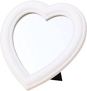 BinaryABC ハート メイクアップ ミラー コスメティック ミラー 壁 デスクトップ ミラー 寝室 ミラー (ホワイト)