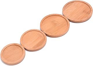 竹製 トレイ 鉢 プランター サボテン 植物皿 多肉植物 和風 植木鉢 ベージュ 6個セット 4サイズ (E:外径9.5cm;内径8.5cm)