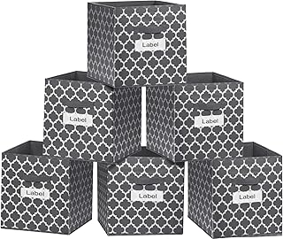homyfort 布収納容器 13x13 フロータブルキューブボックス バスケットコンテナ オーガナイザー 引き出し ホームクローゼット 棚 保育園 キャビネット デュアルハンドル付き グレー ランタンパターン Lサイズ 6個セット