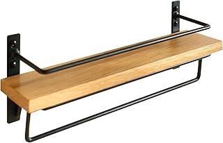 Wallniture Oban 壁掛けバスルームストレージオーガナイザー タオルホルダー 木製シェルフ フック付き ウォールナット
