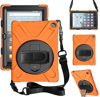 ZenRich Amazon Fire HD 8 ケース/Fire HD 8 Plus ケース,Fire HD 8/ 8 Plus 2020 8インチ専用保護カバー ショルダーケース 耐衝撃 スタンド肩掛け付き(第10世代 2020年発売)-orange