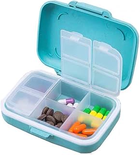 FUKUSHOP ピルケース 薬ケース 錠剤ケース 薬入れ 携帯用 旅行 出張 常備薬 プリメントケース 飲み忘れ防止 密閉 耐湿 薬箱 薬ストレージ ピルボックス 小物入れ 指輪 ネックレス 紐 ネジ 小型収納ケース (6仕切り、ブルー)