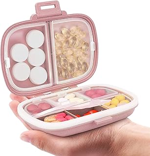 WMMピルケース 薬ケース 錠剤ケース サプリメントケース 薬入れ 携帯用 旅行 出張 常備薬 飲み忘れ防止 密閉 耐湿 薬箱 薬ストレージ ピルボックス 小物入れ 指輪 ネックレス 紐 ネジ 小型収納ケース 8仕切り(ピンク)