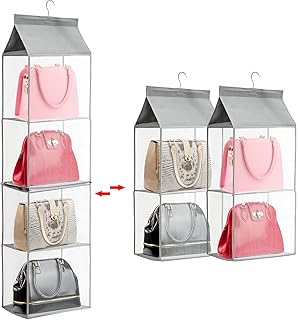 AARainbow ハンギングクリアハンドバッグオーガナイザー クローゼット用 フック付きハンドバッグオーガナイザー 4つの簡単アクセスポケット ワードローブクローゼットスペース節約オーガナイザーシステム 洗濯可能 高さ47.2 x 長さ15.7 x 幅6.3 (B-グレー+ベージュ)