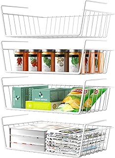 GSlife 棚下バスケット 4個パック 棚下収納ワイヤーバスケット 安定吊り下げバスケット キッチン オフィス パントリーバスルーム キャビネット用 ホワイト