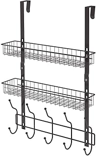 NEX ドア掛けフックシェルフオーガナイザー 5フック バスケット収納ラック付き コート&タオル用