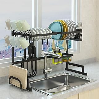 SKOLOO シンク上食器乾燥ラック シンク上調節可能ステンレススチール カウンター上食器乾燥ラック キッチン排水ラックオーガナイザー