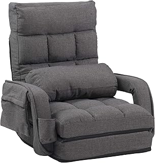 座椅子 リクライニング 14段ギア リクライニングチェアー ファブリック 座イス おしゃれ 椅子 チェアー いす イス コンパクト (ダークグレー)