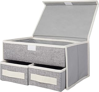 Xianheng 下着収納ケース 仕切り 2点組 蓋 収納ケース ボックス 仕切りケース ふた付き 仕切りボックス 下着収納 下着収納ボックス 折りたたみ チェスト 収納ボックス 収納 ケース 小物入れ 靴下収納 ブラジャー 無地 type1-灰色