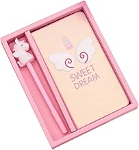 X Hot ポップコーン 7 x 3.9インチ ユニコーンテーマノートブック ユニコーンペン付き ソフトピンクファブリックカバー 女の子へのギフトに R012