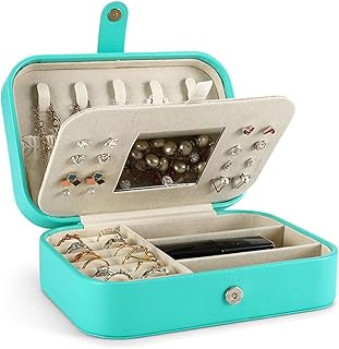 ダブルトラベルジュエリーケース 女性用 ポータブルジュエリー収納ボックス ミラー付き 小さなジュエリーボックス&オーガナイザー 女の子へのギフトに