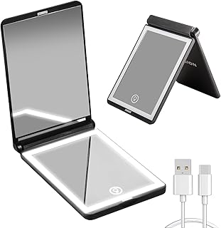 Wobsion 旅行用メイクアップミラー 充電式照明付きコンパクトミラー 1x/3倍拡大鏡 300°フリップ折りたたみポータブルミラー 両面磁気スイッチ 手持ちミラー 調光機能付き 女の子へのギフトに ブラック
