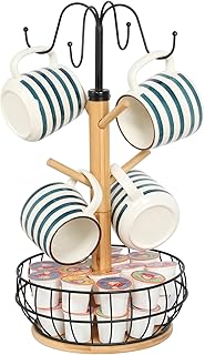 竹製8コーヒーマグホルダー ツリーマグホルダー Kカップホルダーオーガナイザー コーヒーカップラック 木製マグスタンドハンガー マグラック カウンタートップ 8フック付き カウンター用